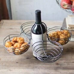 Kalalou Wire Wine Bottle Topper, Quad Basket