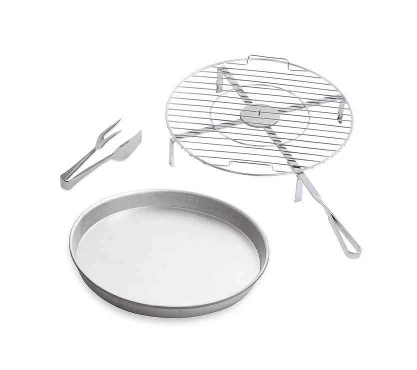 - Rotating grill 18″ diameter rack lets you turn your food to keep it cooking evenly