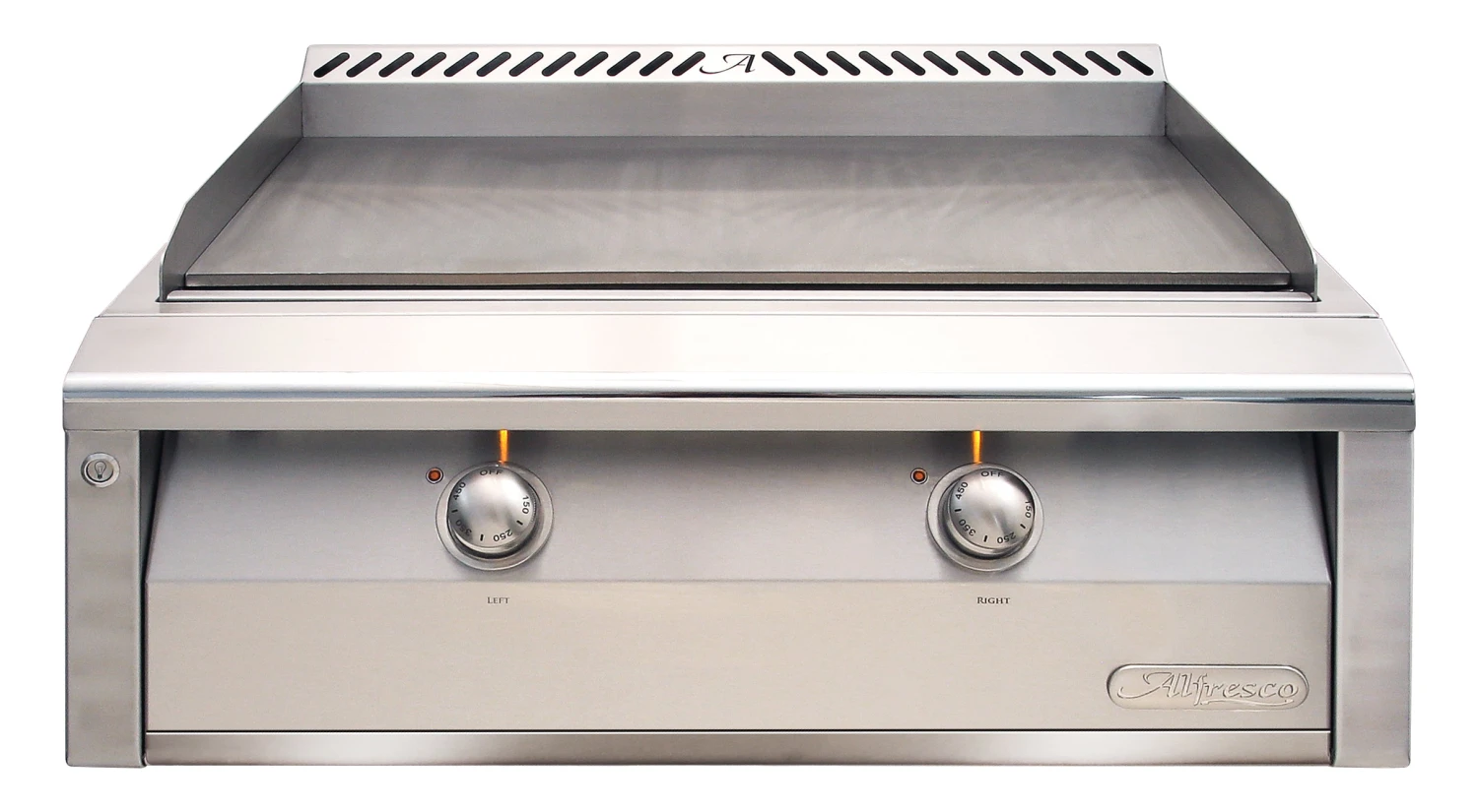 Complete your outdoor kitchen and add a new dimension to your outdoor cooking experience with the Alfresco 30″ professional teppanyaki-style griddle. Features a Dual-zone thermostatically controlled 3/8” solid steel griddle surface that is designed to create precise, even heating over the entire cooking area.