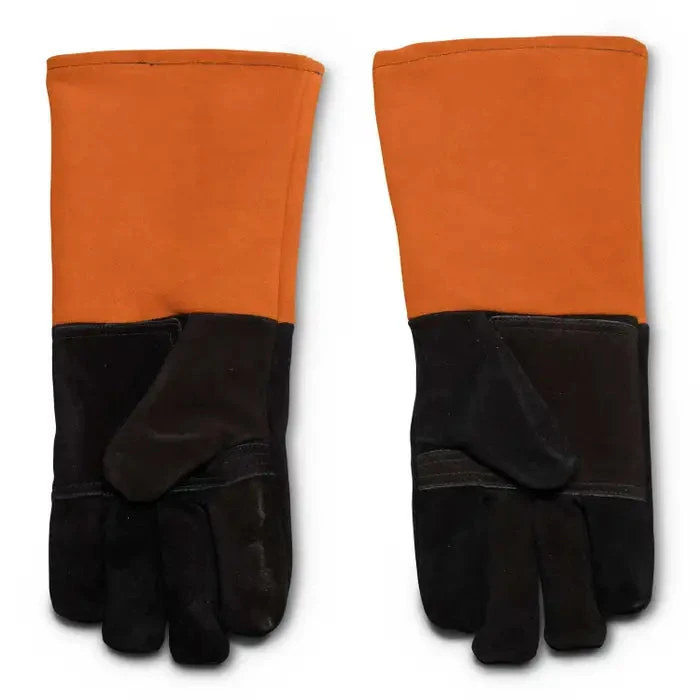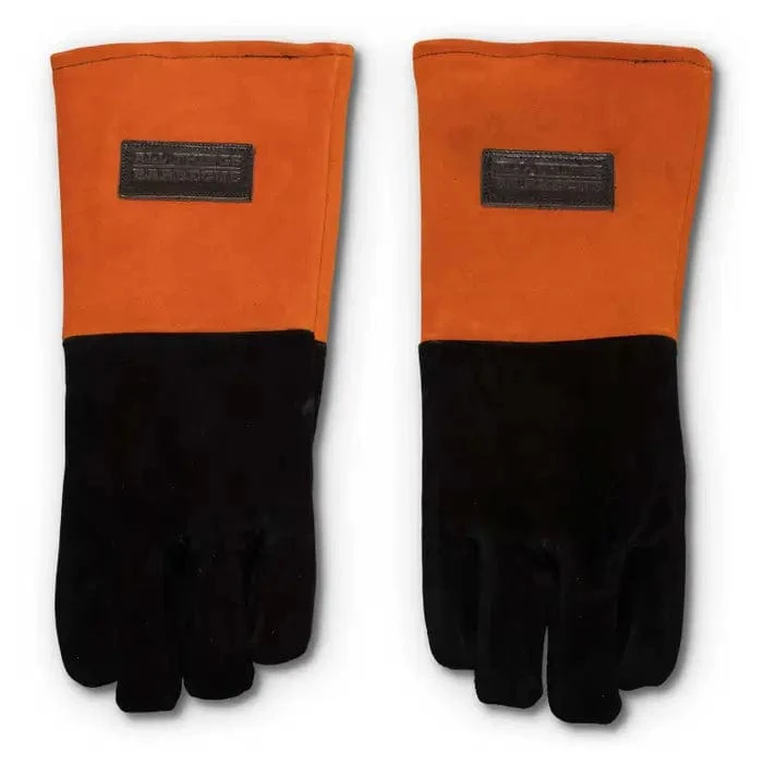 All Things BBQ Long Leather BBQ Gloves sport the bold All Things BBQ brand colors while keeping your hands safe at your next backyard cook or grilling competition. The long leather gloves are designed to withstand the heat and help you transfer your hot dishes with ease. Each glove reaches beyond the wrist for more coverage and protection while adjusting your meal on the grill.