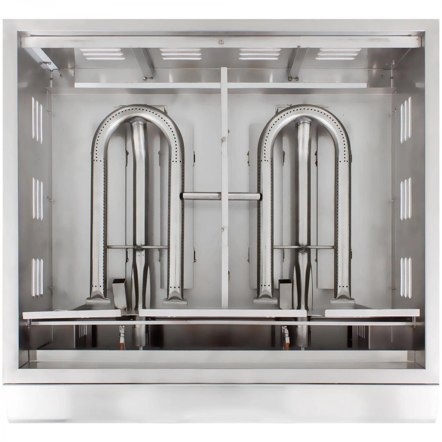 - Two 18,000 BTU stainless steel “U” Burners, for a combined 36,000 BTU’s