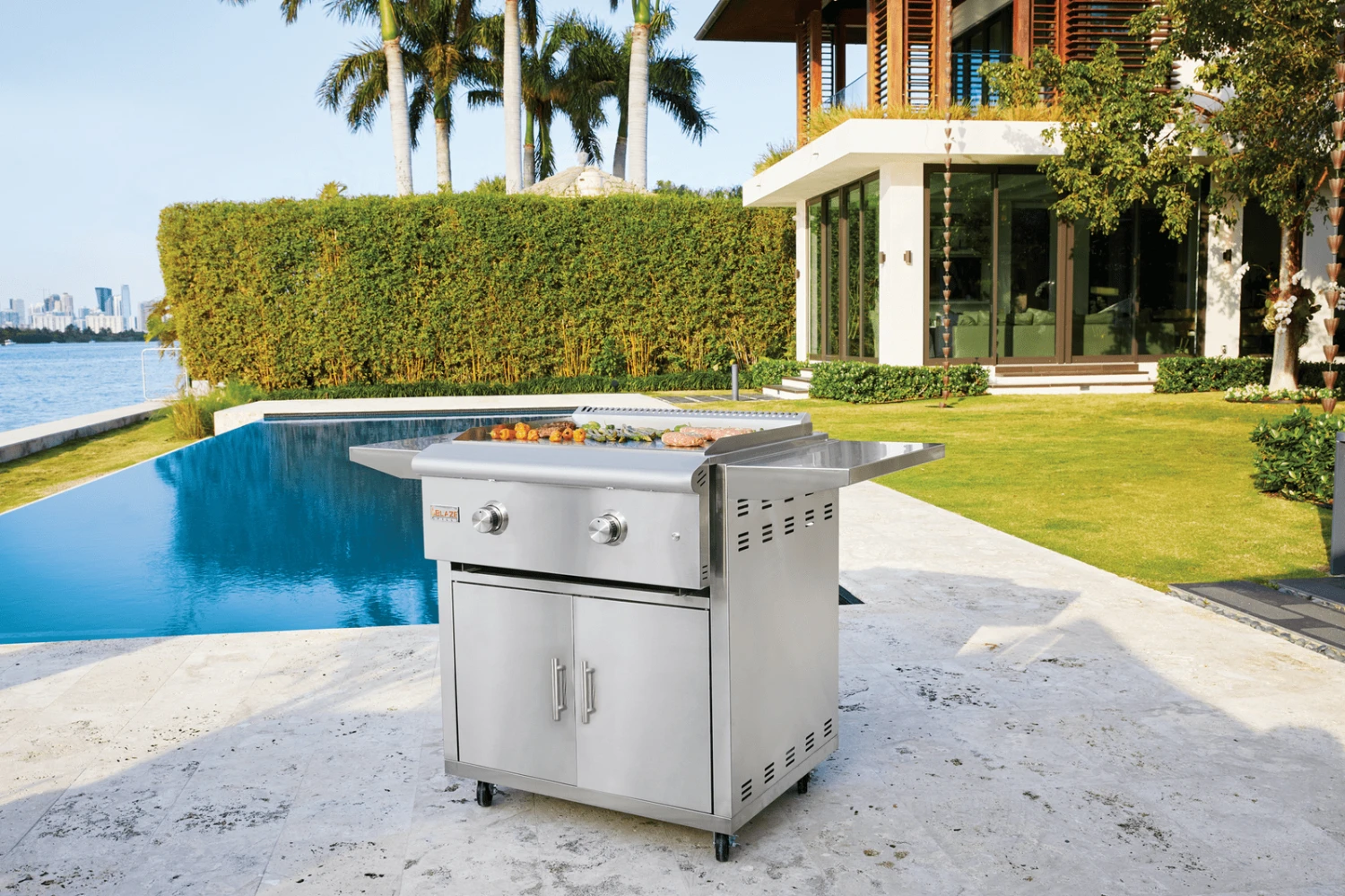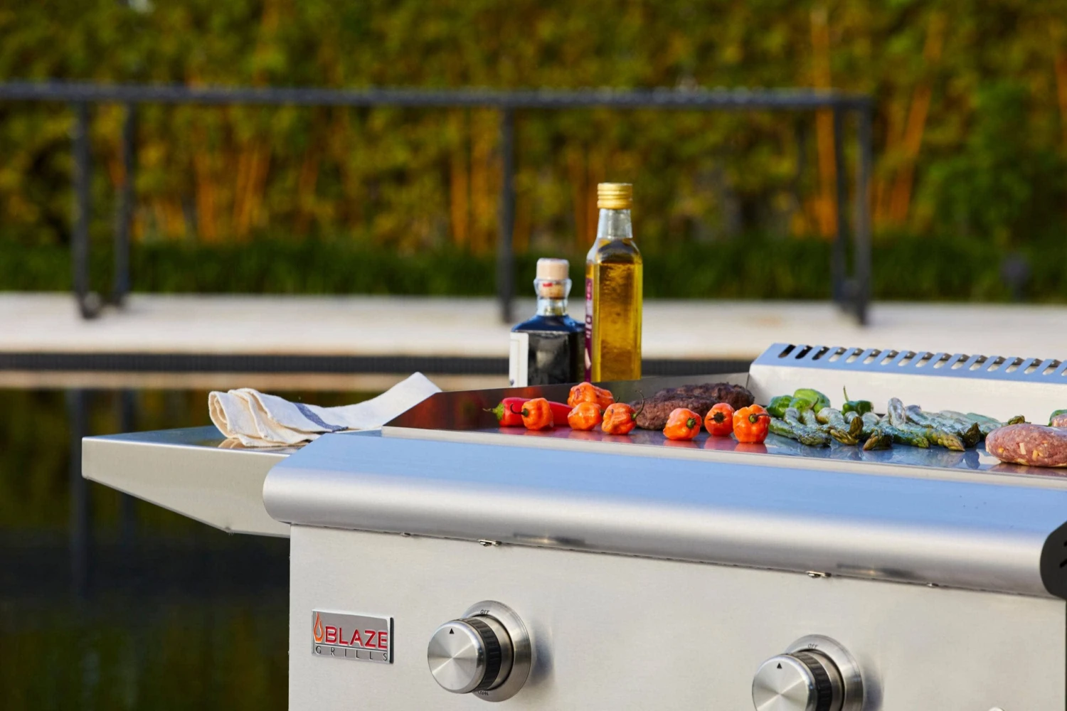 Create flavorful stir-fries, breakfast favorites, and smash burgers quickly and conveniently with the Blaze 30” LTE Series 2-Burner Built-In Griddle! This teppanyaki-style griddle yields 36,000 BTUs of heat to cook food quickly and evenly. The durable all stainless steel construction is built for the rugged outdoor cooking environment. Bring restaurant-quality hibachi grilling to your backyard!