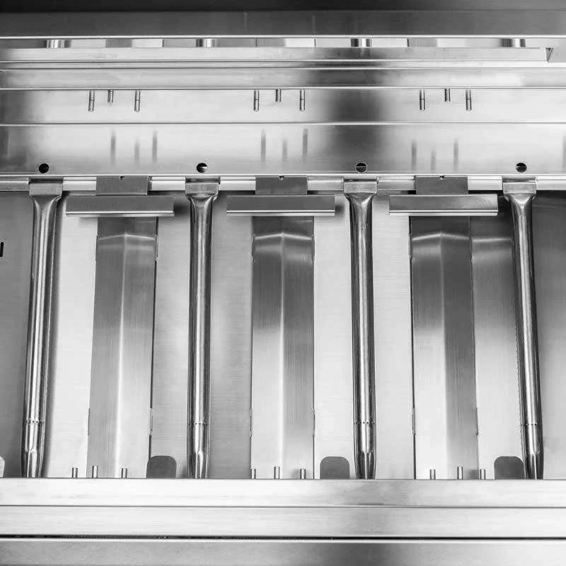 - Stainless steel grid-style flame tamers (flame stabilizing grids) mitigate flare-ups