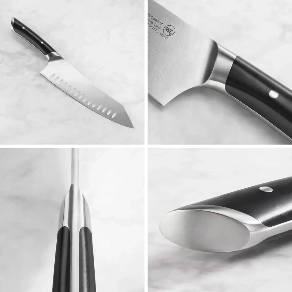 The HELENA Series is an excellent choice for those seeking a high-quality, minimalist kitchen knife. The slim, semi-bolster design provides a balanced grip that enhances the overall sleekness of the knife. The handle’s ergonomic design ensures a comfortable fit, allowing for precision cutting and ease of use. The use of high-alloy German X50CrMoV15 steel and ULTRA6 heat treatment provides exceptional durability, edge retention, and stain resistance. The precise 16-degree angle of the blade sharpening also ensures a razor-sharp edge for efficient and effortless cutting. The Lifetime Warranty against defects in materials and/or craftsmanship is a testament to the brand’s confidence in the quality of their product. Overall, the HELENA Series offers a high-quality, durable, and minimalist kitchen knife that is both stylish and functional.