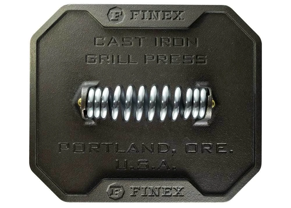 The Finex Cast Iron 8″ Grill Press is made of over four pounds of heavy-gauge cast iron. The Finex Grill Press delivers serious weight and premium cooking performance, no matter the heat source. Pre-seasoned cast iron. Stainless steel spring handle.Â