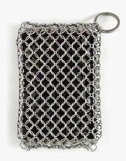 FINEX Chainmail Scrubber is made of durable 304 stainless steel chainmail with a silicone core. This scrubbing pad tackles the big jobs, stubborn messes without removing the seasoning. Easy to clean, just toss in the dishwasher. Measures 3″ x 4″.