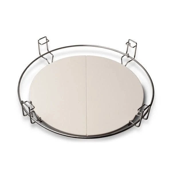 Allows you to cook foods with indirect heat. When paired with Kamado Joe’s Divide and Conquer Cooking System the Half Moon Ceramic Deflector will turn your kamado ceramic grill into a versatile cooking machine. With a single deflector plate you can create a two-zone fire in your Classic Joe, or Large Big Green Egg. Sear your steak over the direct charcoal heat and then move it to the indirect side to finish cooking to your preferred internal temperature without burning the outside of the steak. With a pair of deflector plates you can turn your Classic Joe, or Large Big Green Egg into a perfect smoker or wood fired oven, giving you all the indirect surface you need to smoke ribs and brisket or bake pizzas, pies or other baked goods.