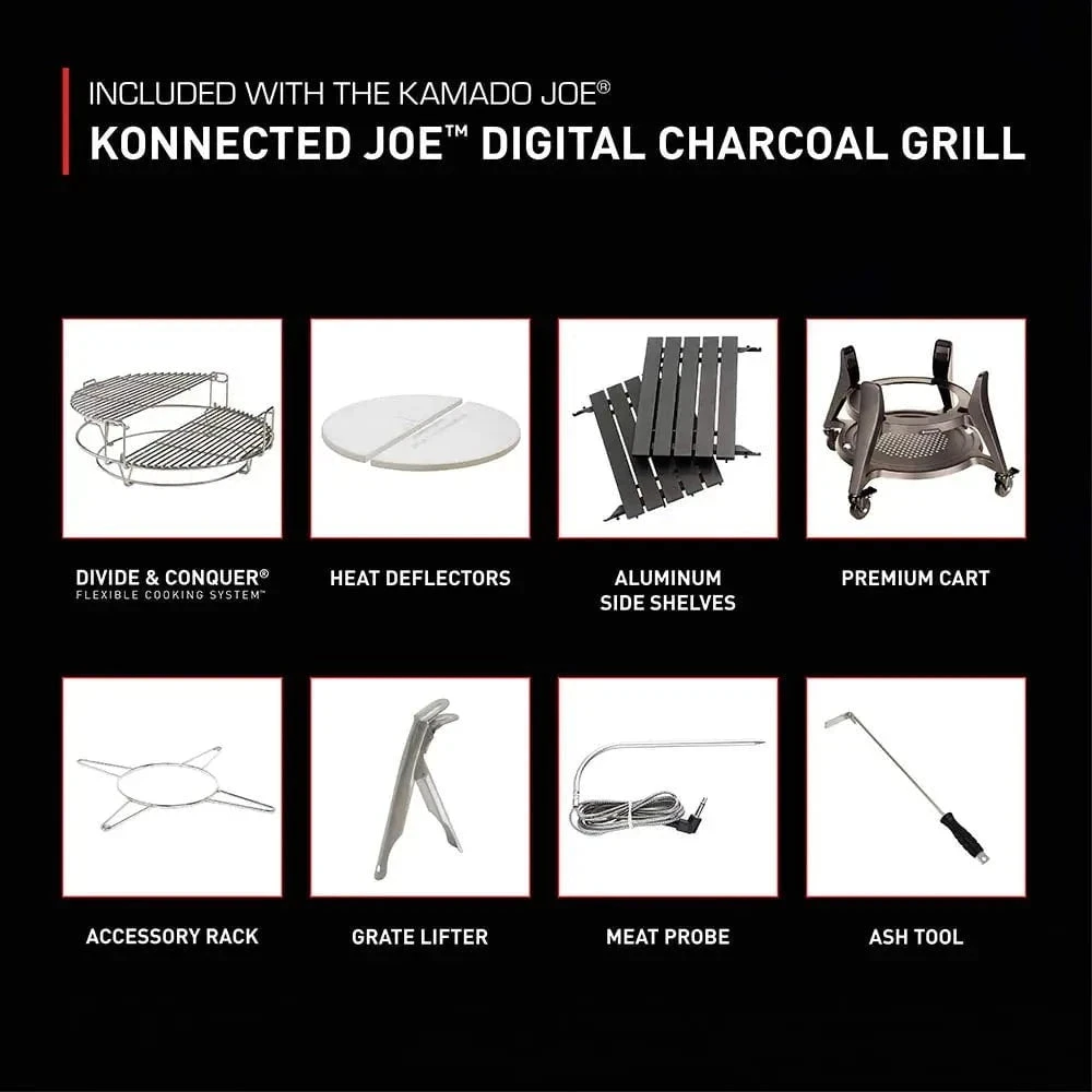 - Use the Kamado Joe App to set temperature and time, monitor meat probes and discover new recipes
