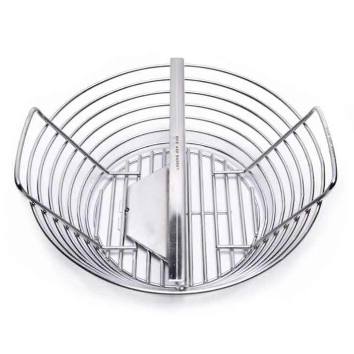 Kick Ash Stainless Steel Large Basket Charcoal Divider designed for use in the Kamado Joe Classic Joe and Big Green Egg Large Kick Ash Baskets. The divider is adjustable for indirect and direct grilling at the same time. Place the Kick Ash basket divider in your basket to allow for 1/3 to 2/3 of your typical volume of lump charcoal. Measures 13.25″ Top Width, 7.5″ Bottom Width and 4.88″ Height.