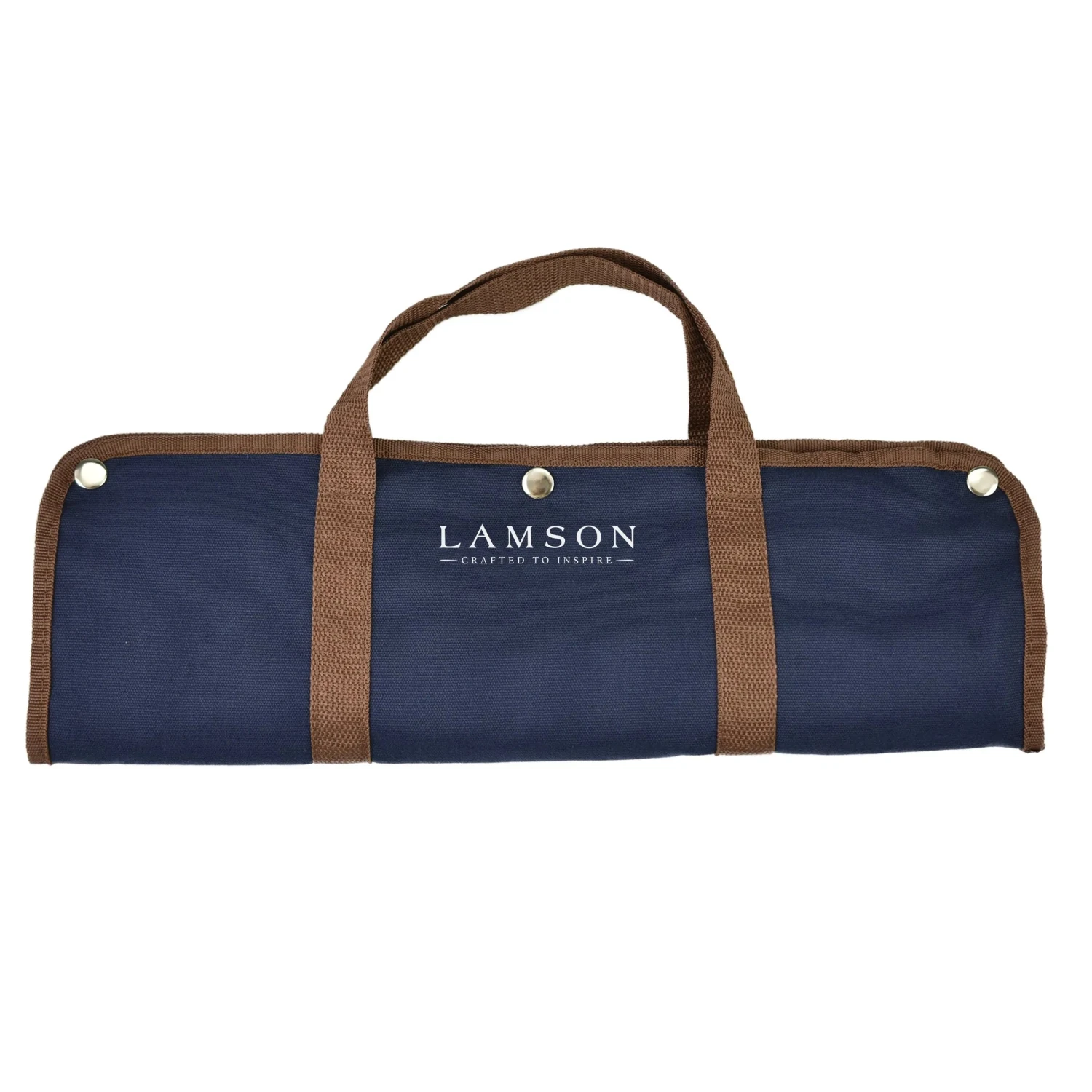 The Lamson BBQ Tailgater Set is designed for home or traveling with you to the game, the beach, camping, or wherever you need a well-made set of barbecue cooking tools made in the USA. The 15-inch overall length makes it easy to store in a car, SUV, or RV. Includes a canvas bag that makes storing it easy and convenient. Each tool has a rugged walnut handle that holds the hardened stainless steel tool firmly with two brass rivets.