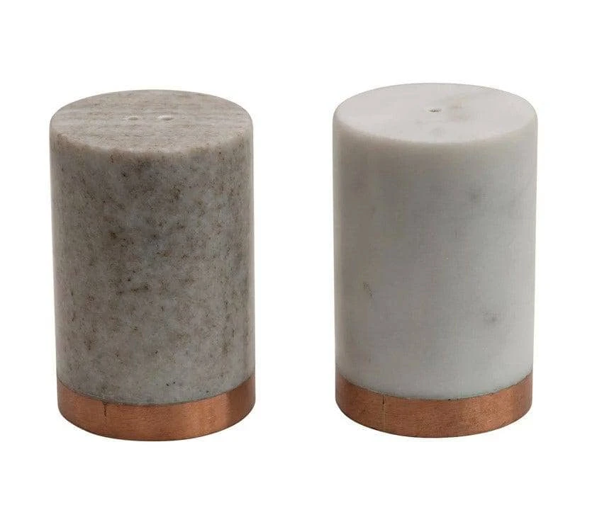 These salt and pepper shakers are perfect for any style of home. The beautiful copper base complements the marble colors perfectly!