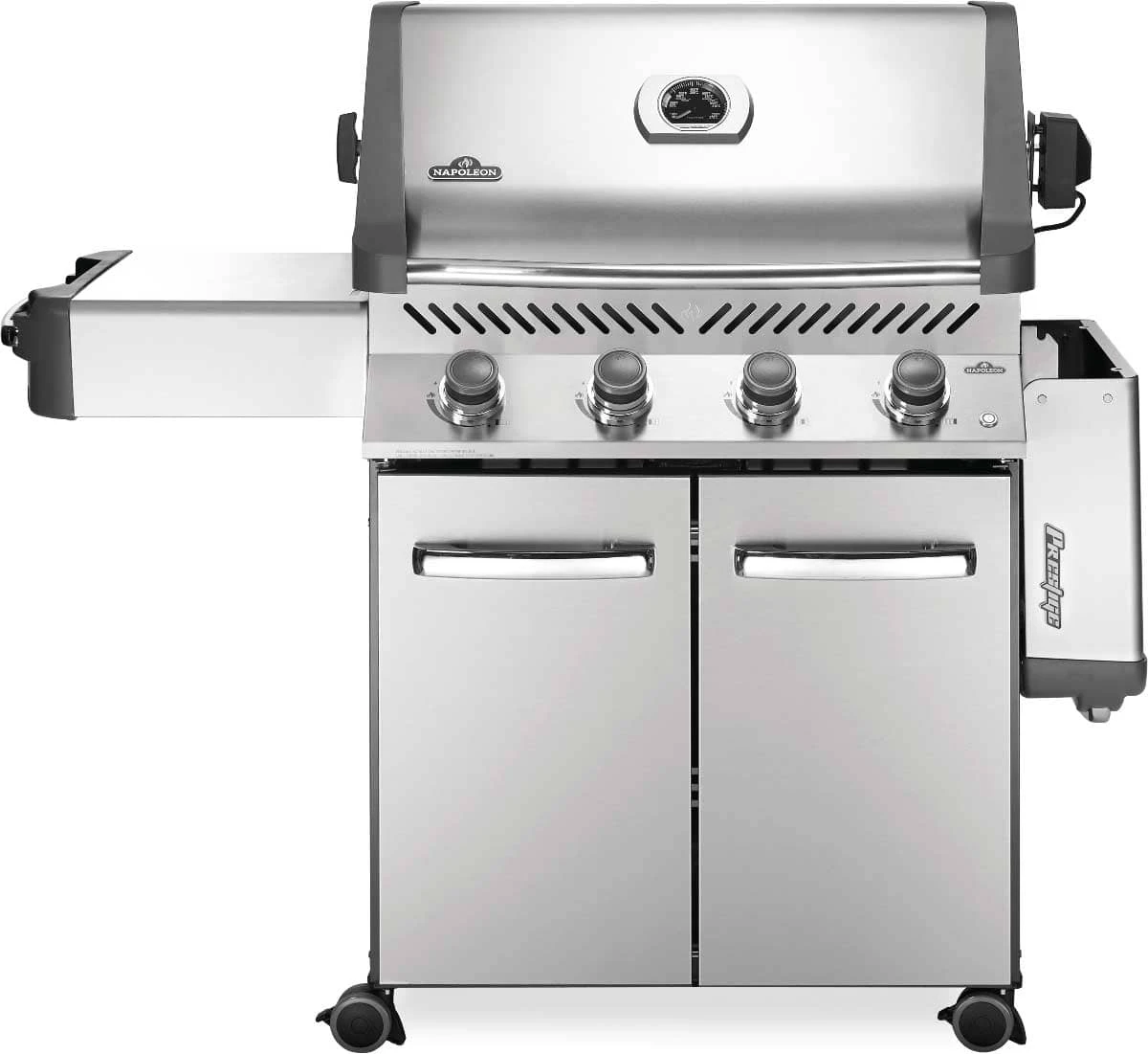 Not just durable on the outside; under the lid you’ll find quality 304-stainless steel is used for the cooking grids, tube burners, and sear plates. With four main burners putting out 12,000 BTUs each, this grill provides you with ample heat that is even across the surface thanks to Napoleon’s patented Sear Plate system.