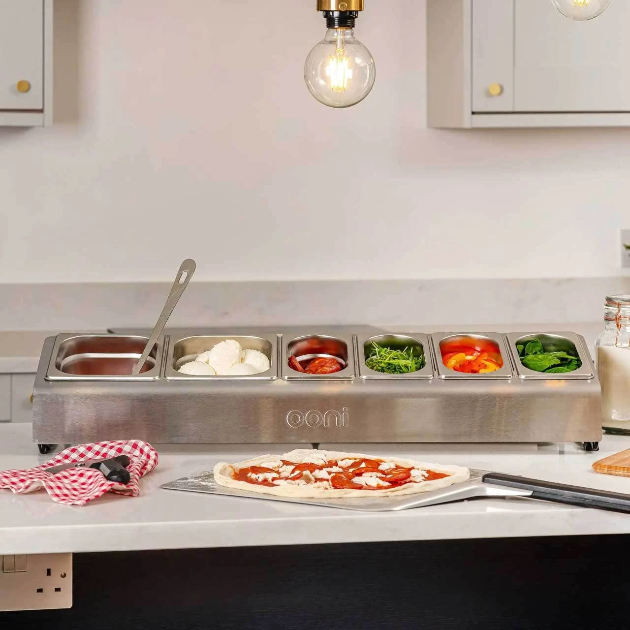 Get ready for your next pizza party with the Ooni Pizza Topping Station. It’s the perfect tool for prepping ingredients making toppings easy to transport. This means moving from the outdoors to indoors easier.