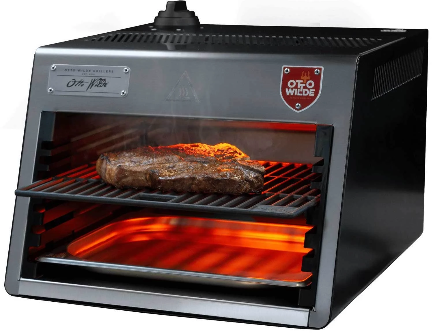 The Otto Wilde Lite Grill features dual radiant OverFire™ burners which reach 1500° F in just 3 minutes. Conventional grills take much longer to heat up and cook by convection, drying out the food. Otto’s Radiant Technology radiates infrared waves directly into the food, allowing for higher steak-searing temperatures and faster cooking while taking the food-drying out of the equation.