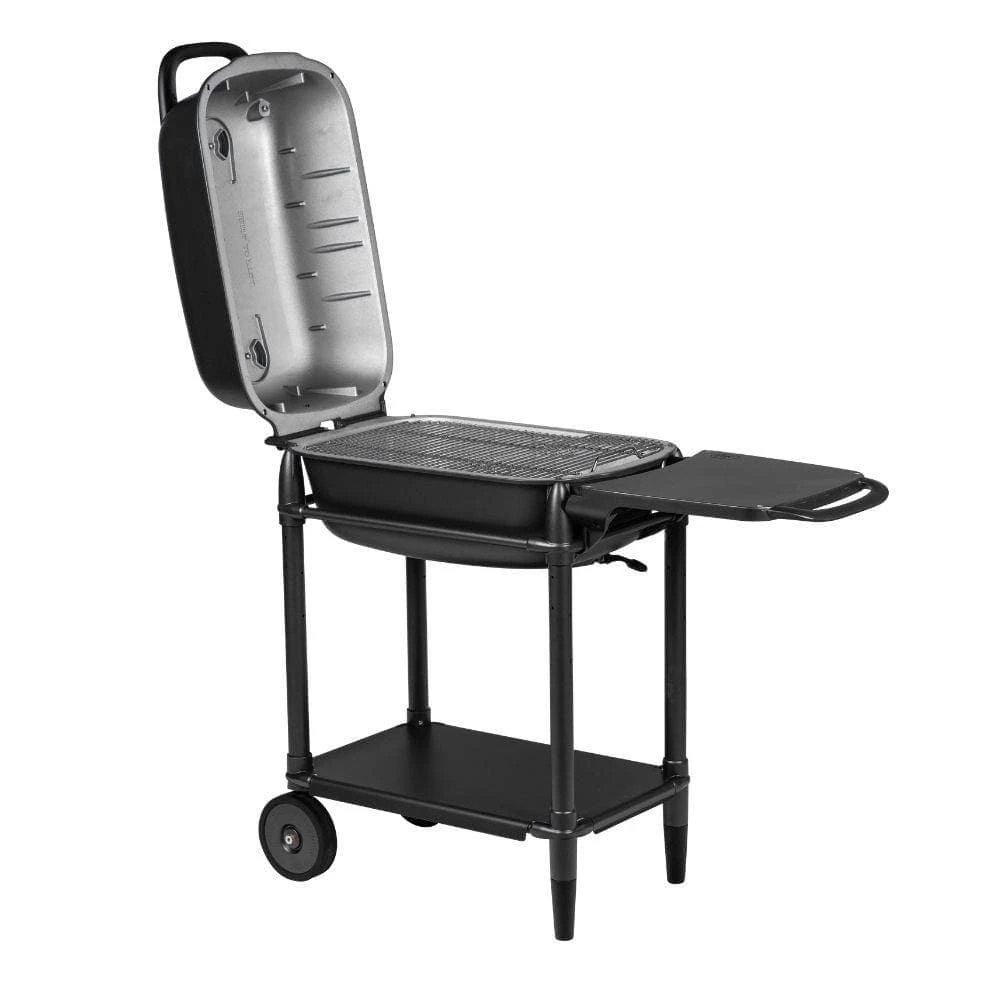 - Hinged cooking grid for easy coal management