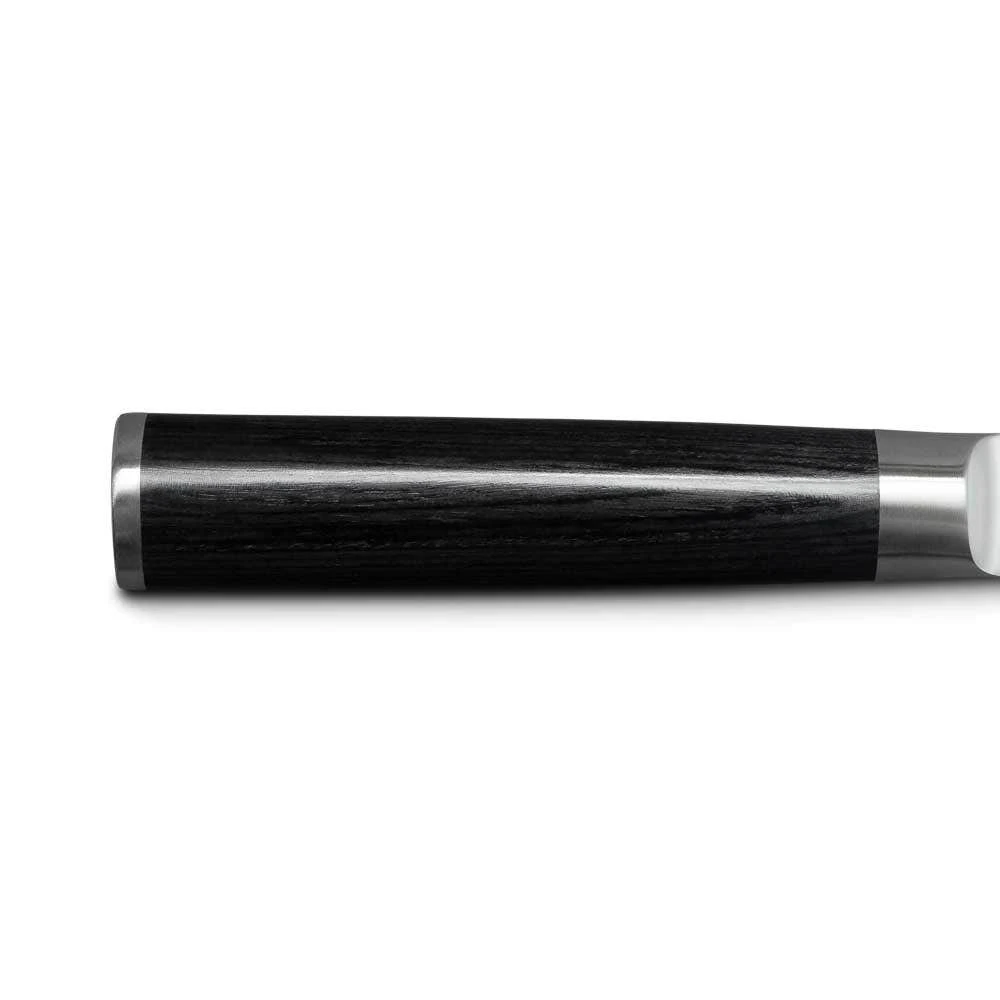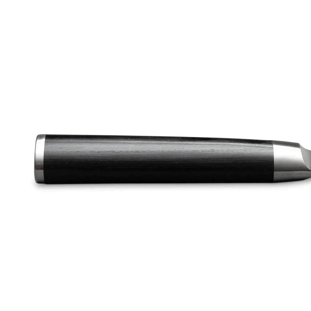 An all-purpose blade ideal for a wide variety of cutting tasks. The six-inch length is perfect for preparing fruits, vegetables, proteins, and other foods. The wide blade keeps knuckles off the cutting board and is extra handy when transferring cut food from board to pan. The curve of this Chef’s knife can be gently “rocked” through fresh herbs or spices to produce a very fine mince. Shun Classic’s thinner blades makes it lighter and less tiring to use than comparable European-style Chef’s knives.
