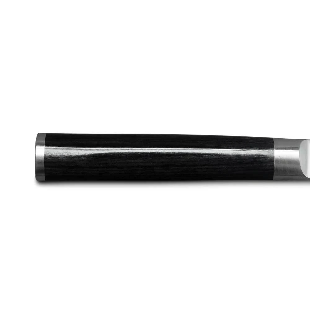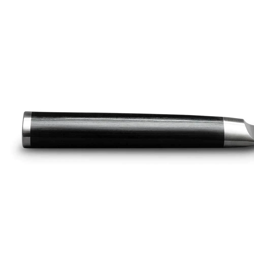 Perfect for small tasks where precise cuts are needed, such as trimming broccoli, green beans, or other smaller vegetables. Use it like a large paring knife or a smaller alternative to the chef’s knife. Its very slightly curved belly enables it to do moderate rocking cuts. It’s nimble enough to peel an onion in hand, then slice it up in short order. Utility knives are sometimes called sandwich knives because they work well on almost everything that goes into a sandwich – from thin-skinned vegetables such as tomatoes, to meats and cheeses.