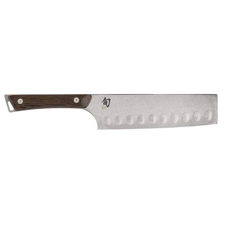 Nakiri is simply Japanese for “vegetable knife.” Both professional chefs and good cooks choose this beautiful and extremely useful tool for fruits or vegetables. Its straight blade, edge, and spine, is a simple push cut. For daily salad preparation or slicing vegetables for stir-fry, it can’t be beat. Finely dicing onions is fast, easy, and with the Shun Kanso Nakiri’s blunt end, safer, too. The hollow-ground indentations in the blade help food release from the blade more easily, too.