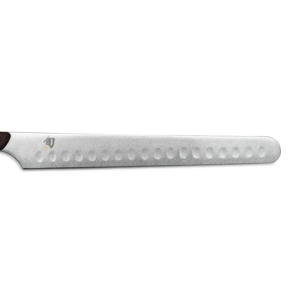 Ideal for trimming and slicing larger cuts of meat, including brisket, roasts, ham, and turkey. The high-performance steel blade is highly refined, high-carbon, vanadium stainless steel that takes a razor-sharp edge and holds it longer. The knife’s long, narrow blade makes it easy to slice larger cuts of meat in a single pass to ensure more of the juices and flavor stay inside the meat. There’s no need to saw back and forth as the hollow-ground indentations on the blade help food release more easily and the rounded tip makes the knife safer and easier to use. The included wooden saya, or sheath, protects the blade and makes it simple to transport where you need it.