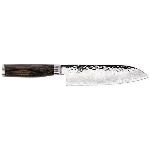 The Shun Premier 7-inch Chef’s Knife is lightweight, agile, and offers an extremely comfortable grip. This blade is light, agile, and very easy to maneuver with just enough curve to enable rocking cuts. The result is a versatile knife that can stand in for a standard chef’s knife in most applications.