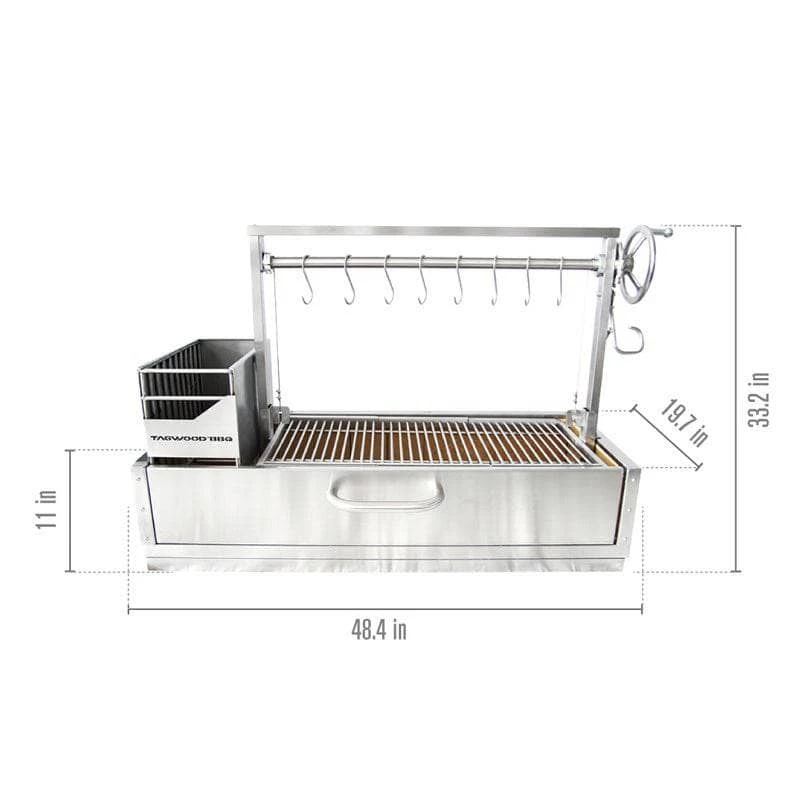 Bring classic South American flavor and cooking to your outdoor kitchen with the Tagwood BBQ05SS Built-in Santa Maria Wood Fire and Charcoal Grill.