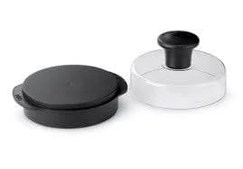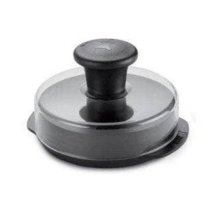 Makes perfect burger patties every time. Its design allows you to dimple your burger patties to make them flat and uniform with ease. This press makes 1/4 pound or 1/2 pound patties. The nylon grip handle improves grip and detaches for quick and easy cleaning; plastic base and lid. Don’t fuss over molding hamburger patties by hand any longer with the Weber Burger Press.