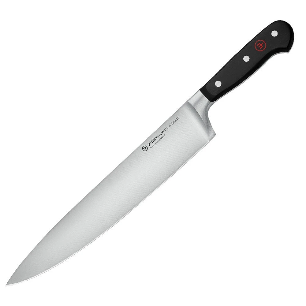 The chef’s knife is the workhorse of any kitchen and the Wusthof Classic 10″ Chef’s Knife is the perfect knife for the job. With a full forged blade and a nice rock on the edge that makes slicing and chopping a breeze this knife can be put to work immediately.
