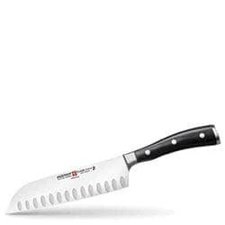 Features a thinner blade than a traditional chef’s knife with a 10° edge that makes it perfect for slicing and dicing. The gradual curve to the tip of the edge gives you a straight edge during nearly the entire length of the knife.
