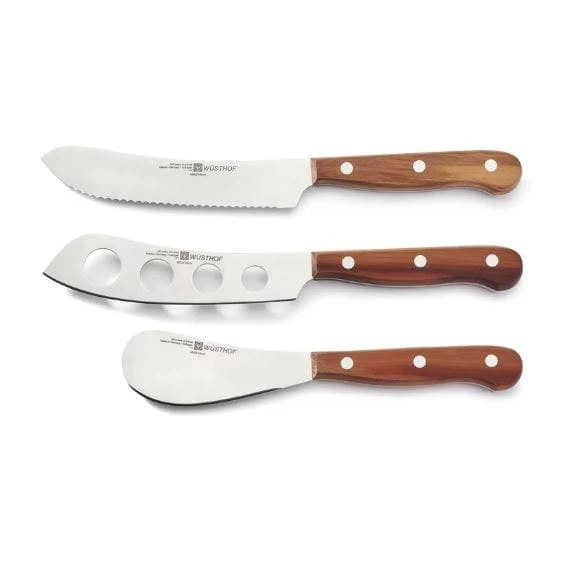 - Three unique knives for various purposes – meat cutting, cheese cutting, and spreading