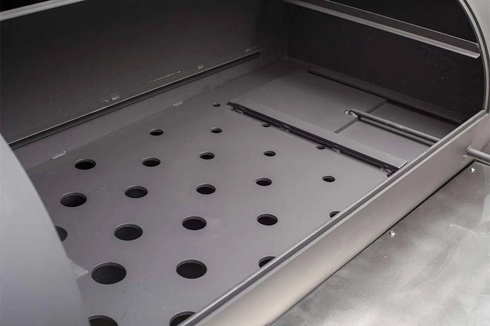 The 26″ x 54″ cooking chamber features two 25″ x 26.5″ main level cooking grates giving you 1,325 square cooking inches while the slide out second level shelf adds another 898 square cooking inches. The Cimarron was designed to easily cook an entire barbecue competition giving you the room you need to move food around as necessary and allow heat and smoke to envelop meat giving you better bark and flavor. Like its competition counterparts, the YS1500 and Frontiersman, the Cimarron features Yoder Smokers’ legendary Heat Management System that allows the pitmaster to precisely control smoke and heat flow throughout the pit.