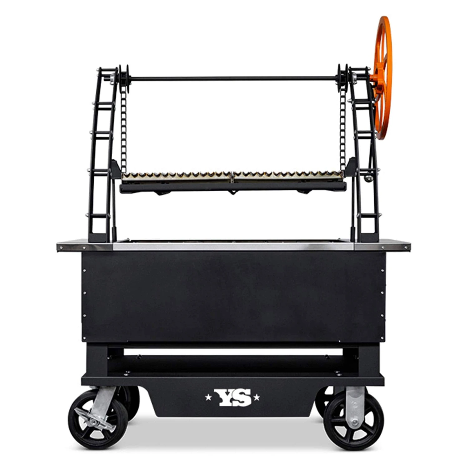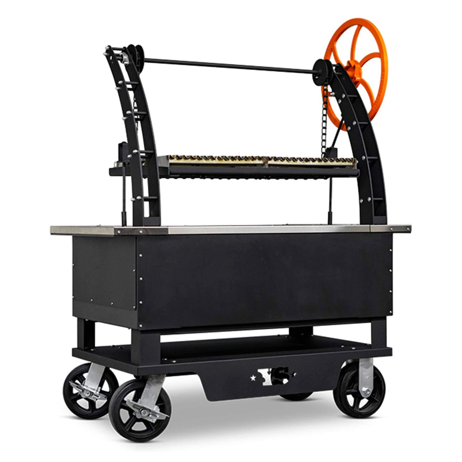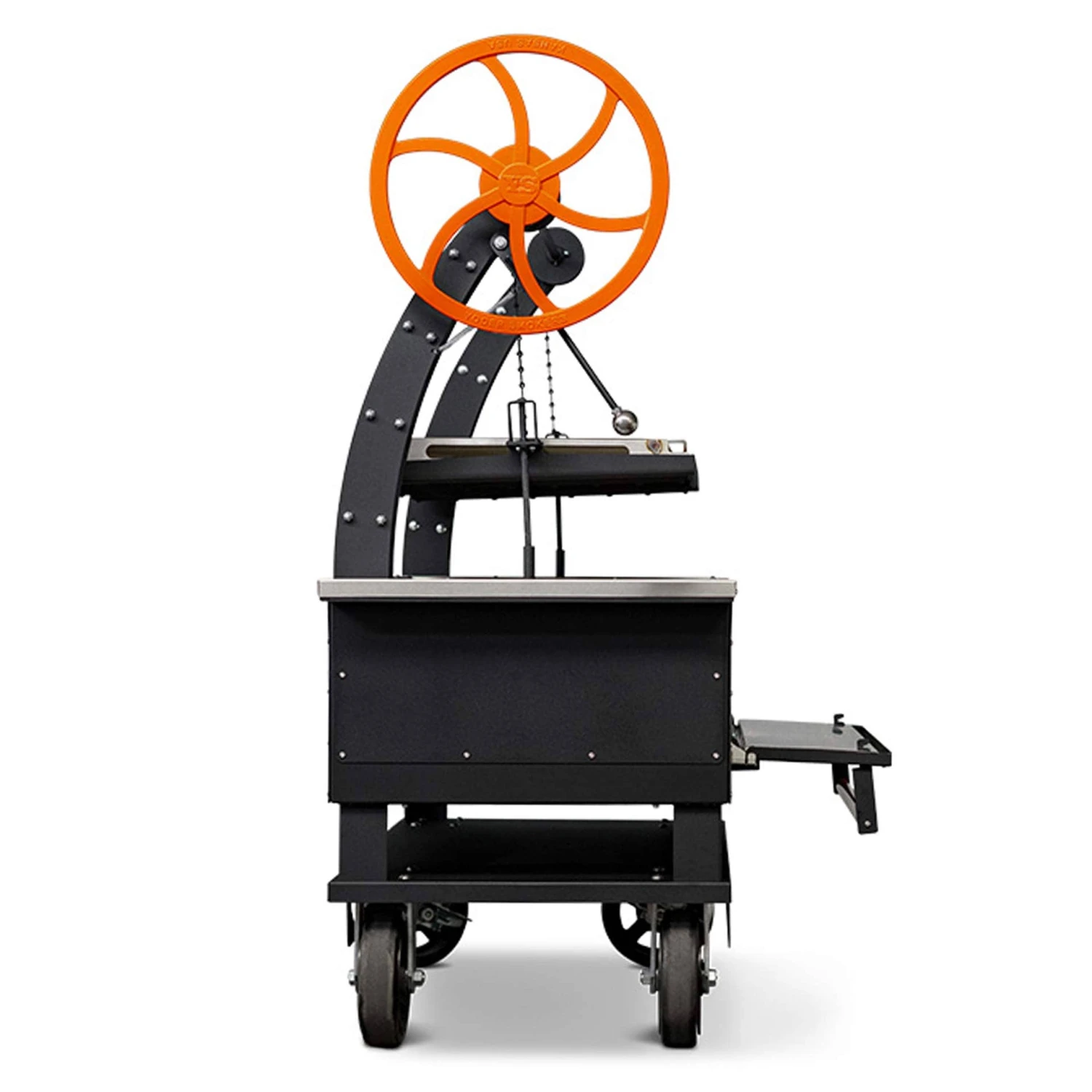 - Custom Cast Hand Wheel: Featuring a ratcheting system, the hand wheel allows effortless adjustment of the grates’ height for precise control over cooking temperatures.