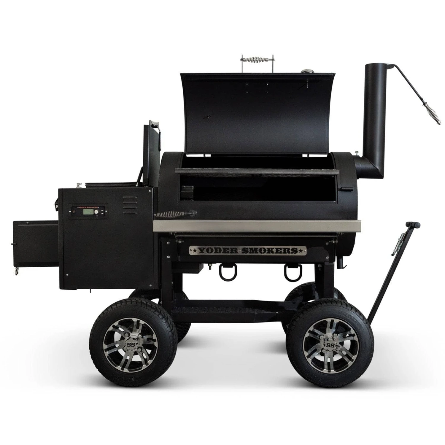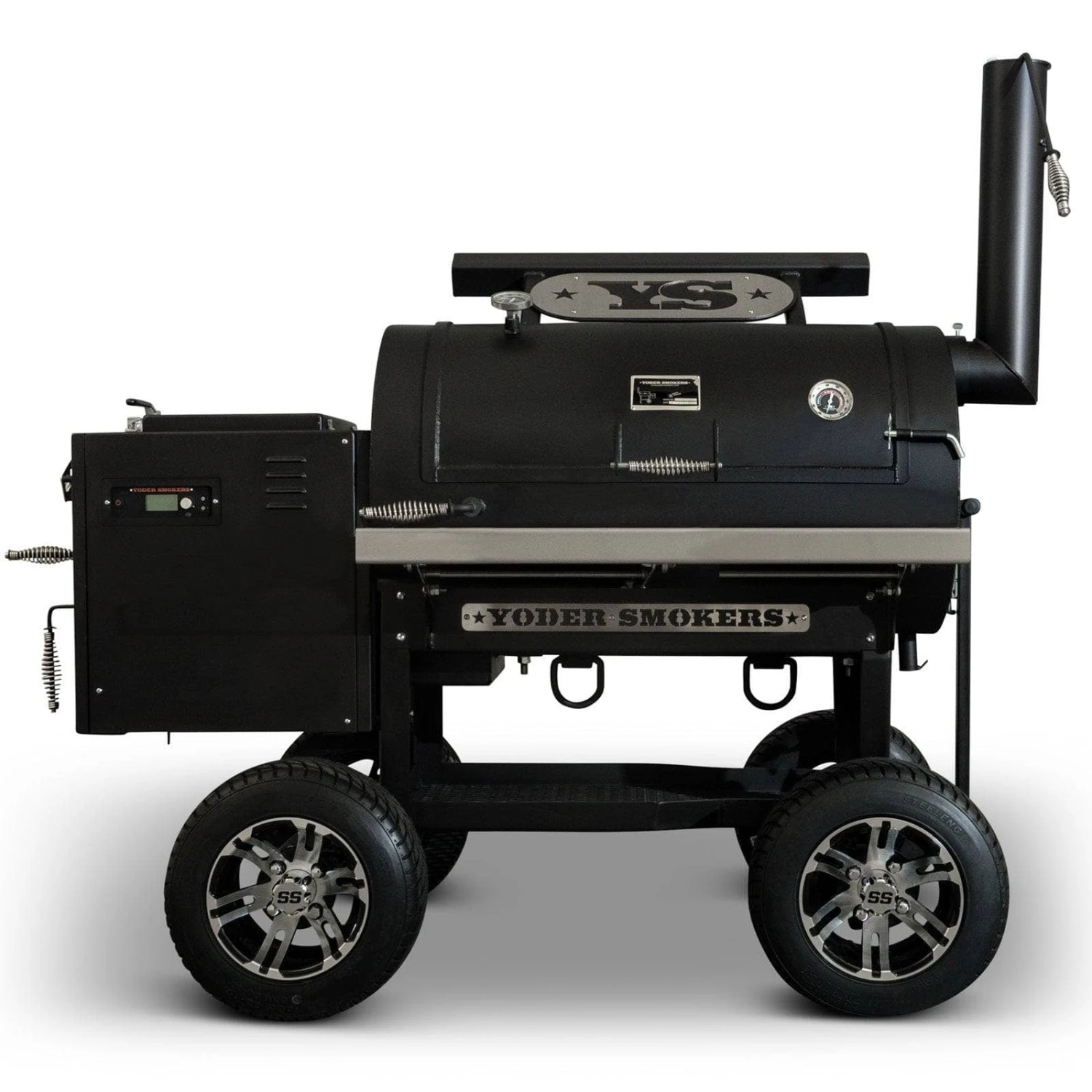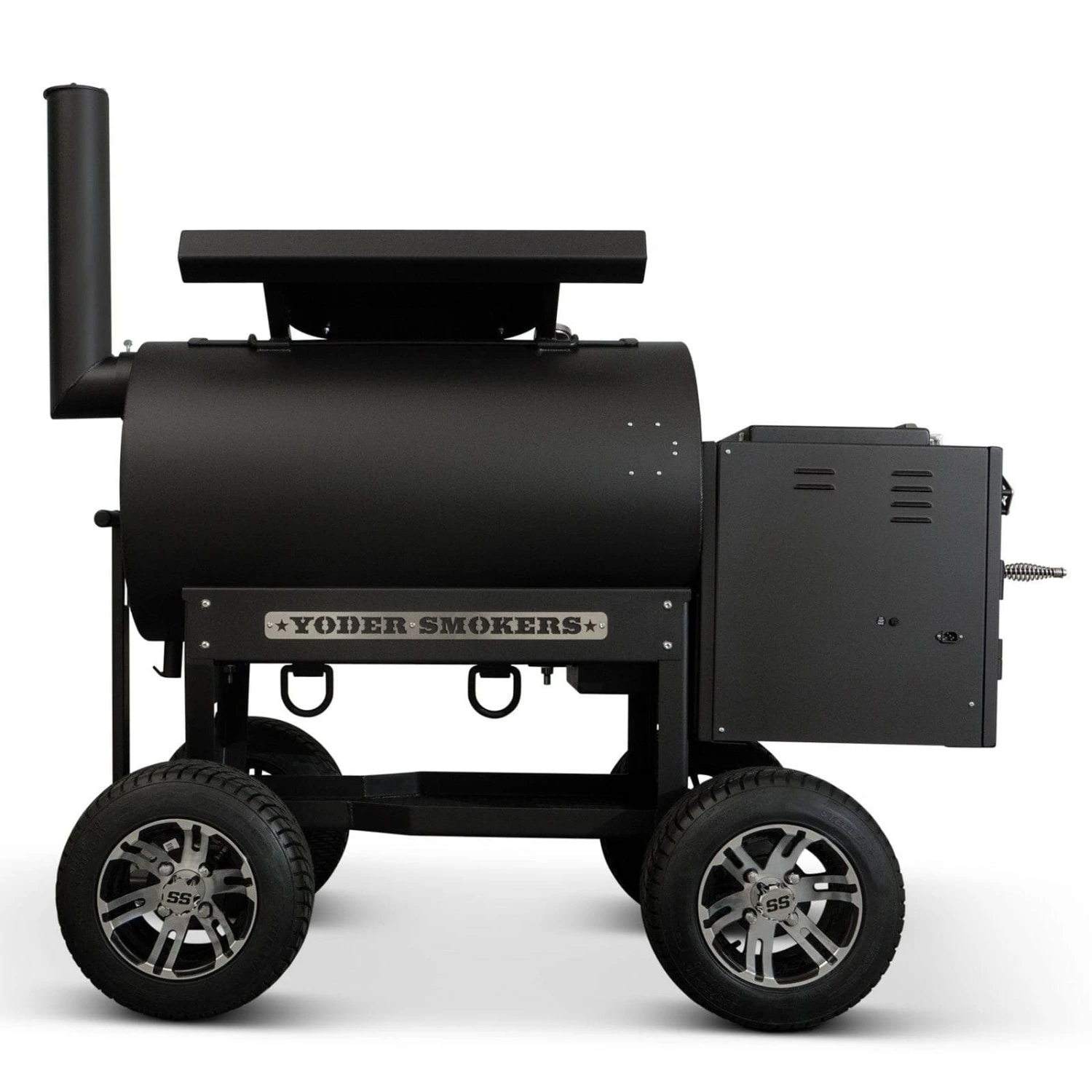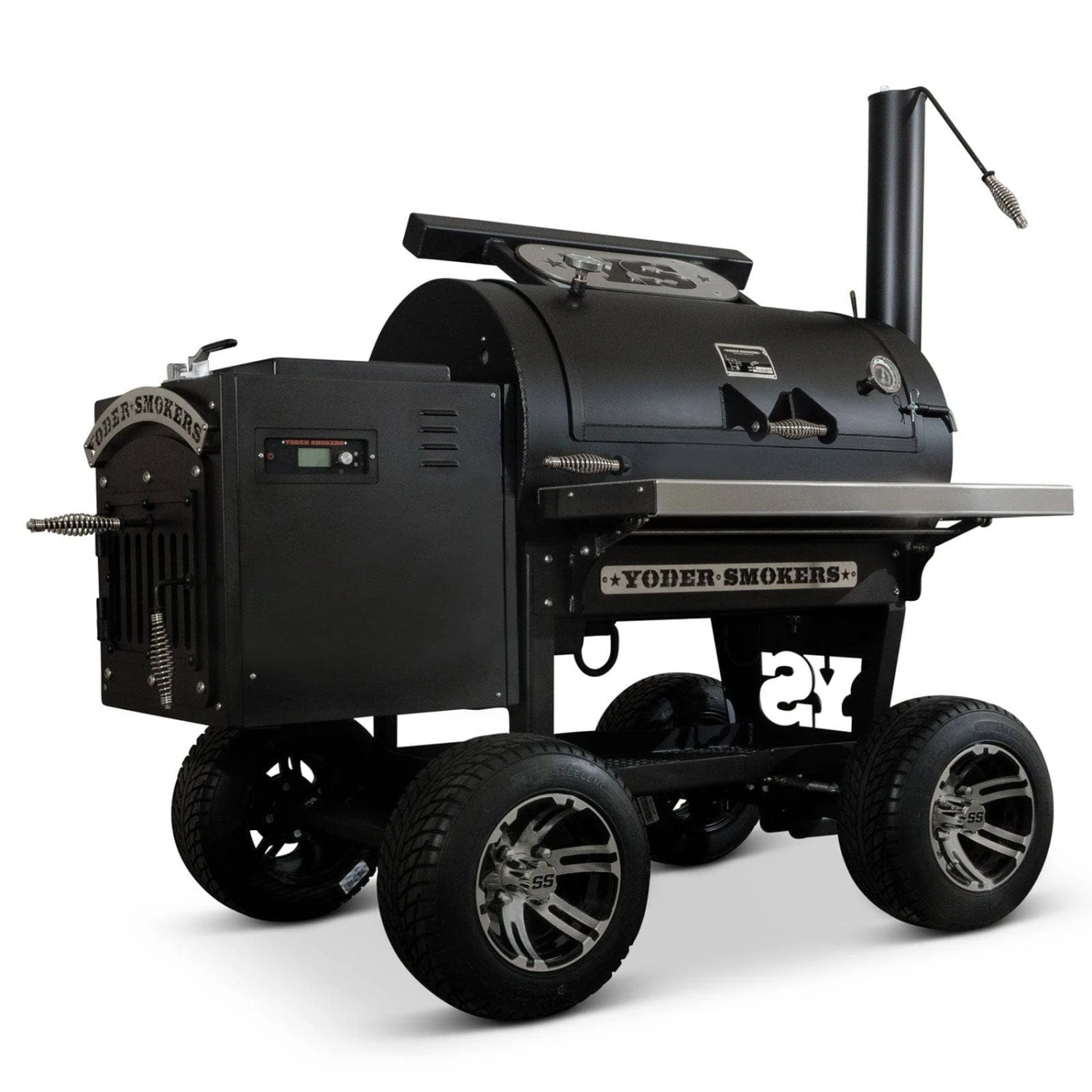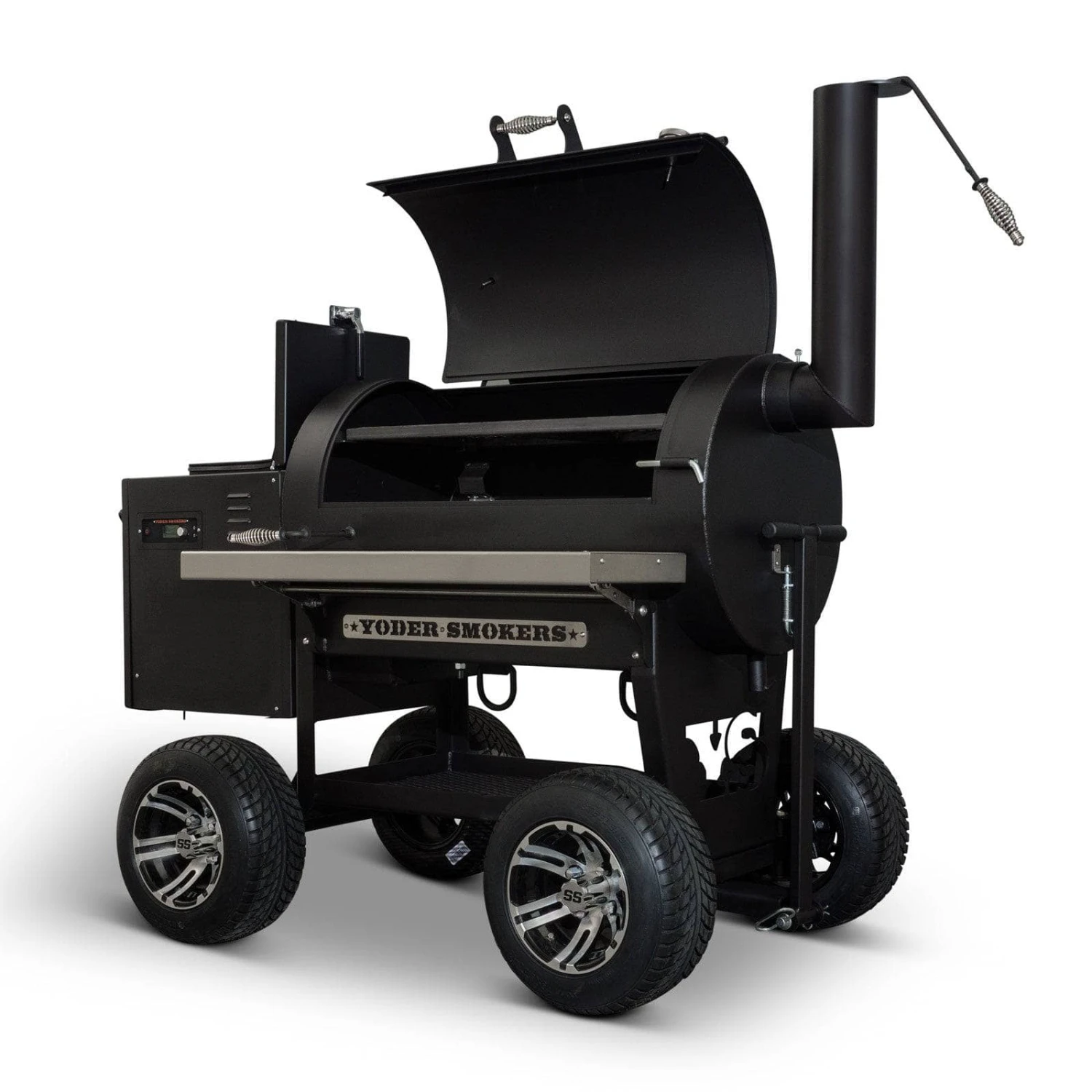 Built around the tried and true YS1500s pellet grill, this cooker will feed a crowd and look good doing it. The cart is equipped with 10″ alloy wheels featuring pneumatic tires that are 8″ wide, perfect for handling any terrain. Transporting the YS1500s Outlander Series is a breeze with its connected handle and steering axle, allowing easy positioning.